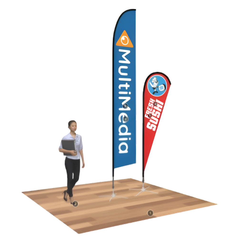 Insert the spike base into grass or use the X-base to stand on concrete. We custom print your graphic artwork on polyester mesh by the process of dye sublimation
